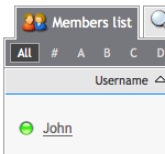 Die Mitgliederliste sortiert alle Mitglieder der Seite nach einem bestimmten Kriterium. Sie können die Sortierung über die Tabellenköpfe verändern oder nach dem Anfangsbuchstaben filtern. Unterhalb der Auflistung können Sie auf die nächste Seite navigieren.